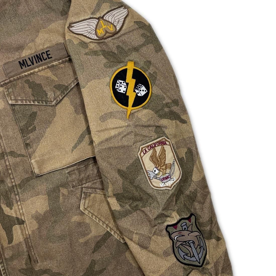 オリジナルのカモフラージュ柄をベースに、スリーブ部へブランドオリジナルのワッペンを施した贅沢なデザイン。
