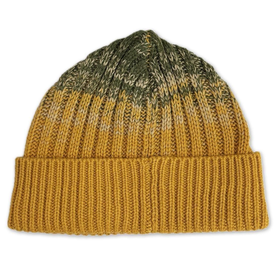 配色がグラデーションになるよう、リブ状に編み上げられたニットキャップとなります。