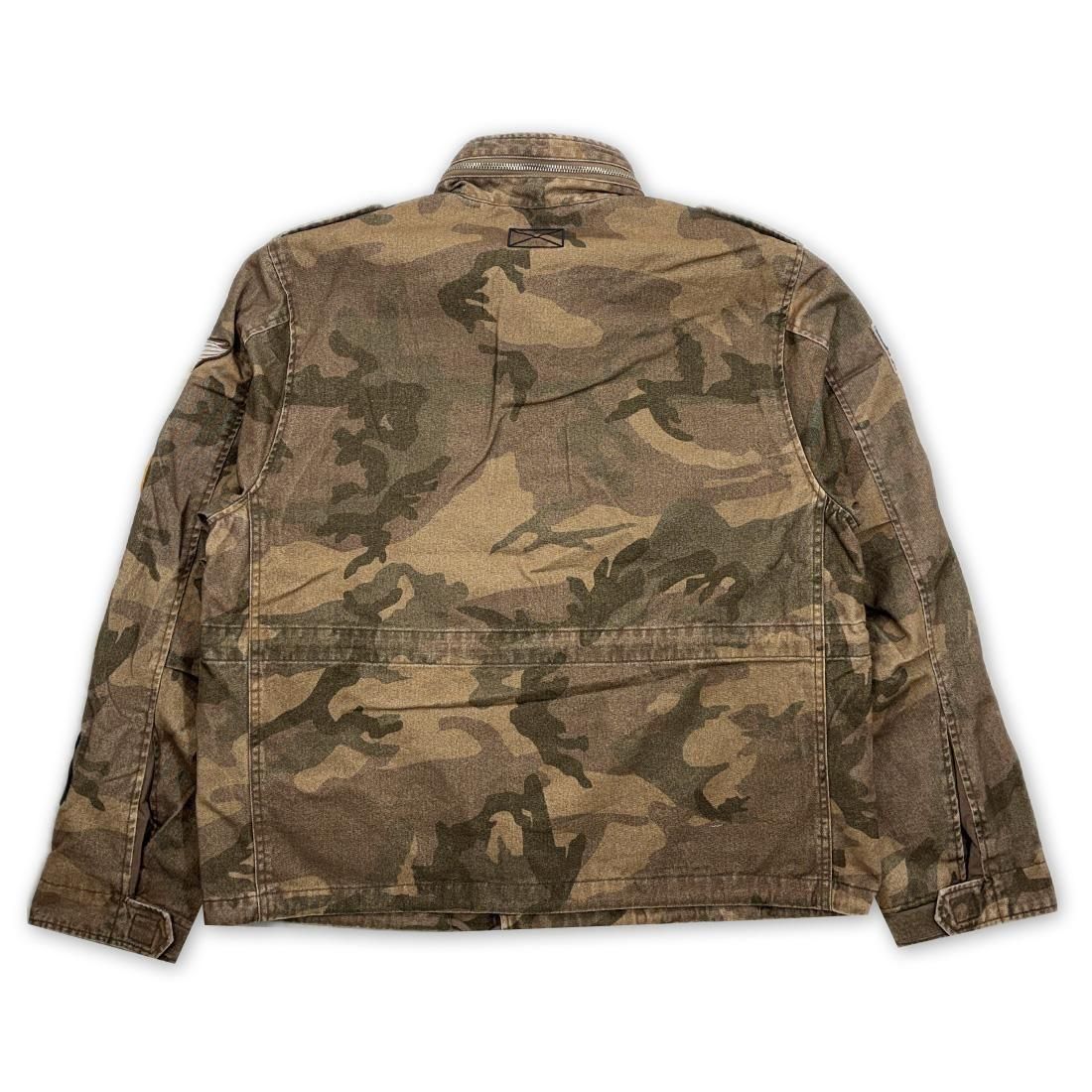 オリジナルのカモフラージュ柄をベースに、スリーブ部へブランドオリジナルのワッペンを施した贅沢なデザイン。