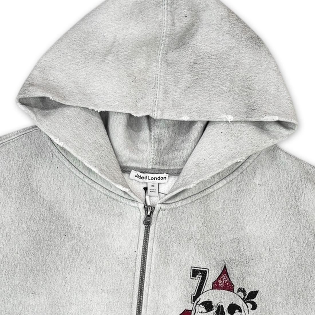 各所にユーズド加工が施されたジップフーディー。